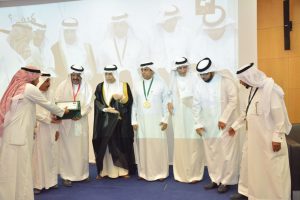 وفي نهاية الاحتفال شارك كبار الحاضرين للمناسبة ، أمين عام ورئيس لجنة الجائزة الدكتور حامد الربيعي ، في تقليد المحتفى به ميدالية الجائزة ، وتقديم وثيقتها ، وشيك بمبلغ مائة ألف ريال قيمة الجائزة ..