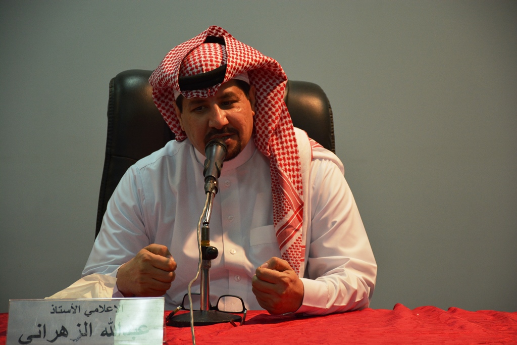 كانت المحاضرة الأولى في هذا البرنامج للأستاذ عبدالله أحمد الزهراني ، رئيس تحرير صحيفة مكة الإلكترونية ، بعنوان : ( الإعلام الإلكتروني وسيلة تواصل العصر )، الذي تحدث عن التطور الإلكتروني الذي انعكس على مختلف مفاصل ومناحي الحياة في العصر الحاضر ، ووجد له ساحة رحبة في ميدان الكلمة المكتوبة والمقروءة ، المرئية والمسموعة ..